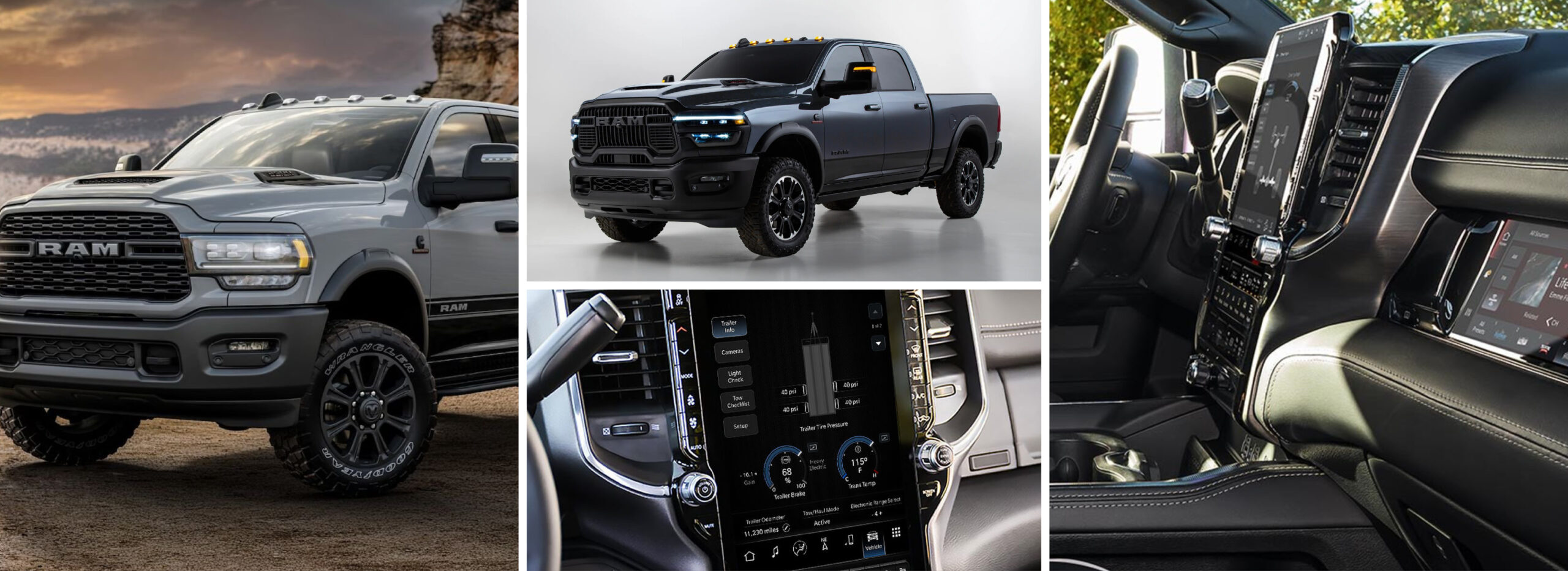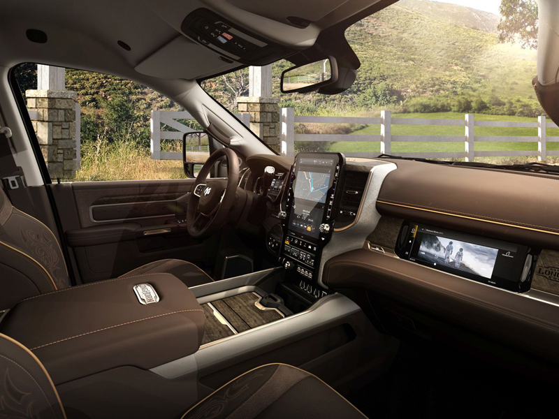 Den nya 2025 Ram 2500 Limited-interiören ger känslan av förstaklass på fyra hjul och finns i antingen röd eller svart. Med 100 % lädersäten och detaljer i äkta trä och aluminium är denna interiörupplevelse på nästa nivå. Laramie-inredningen ger sportigare känsla och omgivande materialval.