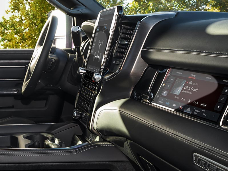 Ram Heavy Duty är utrustad med mängder av egenskaper och funktioner för att underlätta och assistera släpkörning. Systemet “TRAILER REVERSE GUIDANCE VIEW” använder sig av bilens 360° kamera och ser till att föraren får en justerbar display-överblick på båda sidorna av bilen och släpet.
