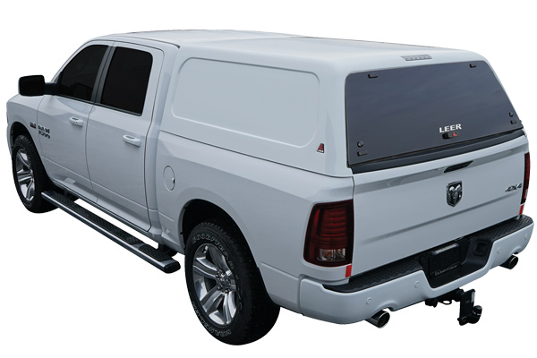 LEER 100XR, lackad kåpa i glasfiber från LEER med centrallås för baklucka, utan sidorutor. Går att välja till luckor (artikel nr CV0152) alternativt skjutfönster (artikel nr CV0150). Obs, passar till 5,8 fots flak utan Multi-Flex Tailgate.