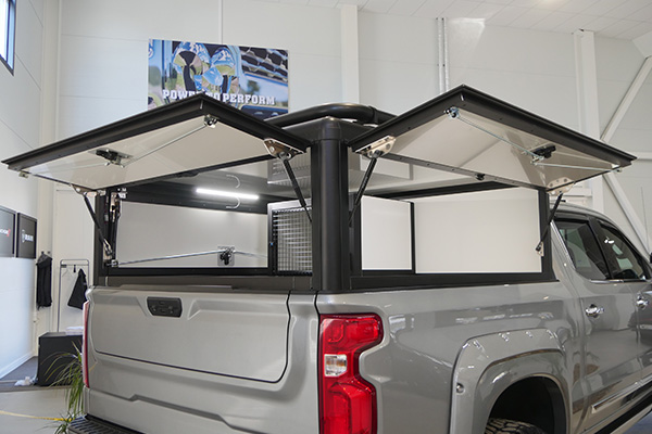 Hoffman flakkåpa hytthög, svart folierad, c-lås, LED-belysning med sidluckor och lasthylla, inklusive montering.